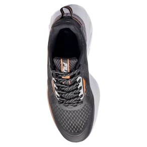 Cabedal com painéis perfurados e partes em material têxtil e sintético, garantindo ótima respirabilidade e resistência ao uso.