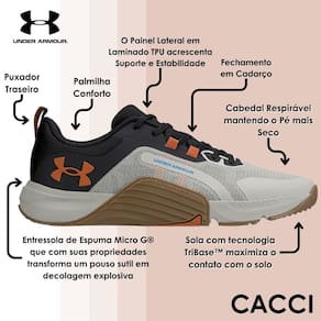 - A borracha de tecnologia TriBase™ maximiza o contato com o solo e promove uma maior naturalidade da passada, além de envolver as laterais para auxiliar na execução de exercícios específicos