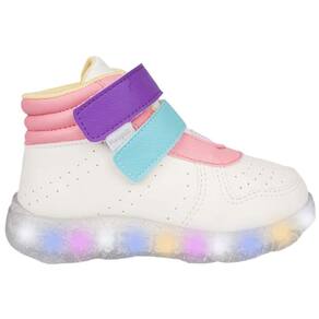Tênis Menina de led infantil em sintético branco e colorido, detalhe perfuro na frente e laterais, tênis casual para o dia a dia! Palmilha feet care que possui um sistema avançado de fofura, com a densidade ideal para os pés, minimizando impactos! Calce fácil através de fechamento oratico e elástico que abraçam o pé, facilitando a troca para as mamães! Tênis infantil com solado translucido cheio de glitter, feito em material emborrachado, detalhes em flores e com muitas cores no led ao caminhar! Led do solado com cores fortes e brilho intenso! Sola extremamente leve e antiderrapante para as pequenas que estão se arriscando nos primeiros passos e para aquelas que amam correr e brincar muito por aí.