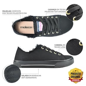 O tênis Moleca 5667.322 tem o cabedal em lona com as bordas desfiadas deixando dando um visual mais divertido e perfeito para o dia a dia. O fechamento é em cadarço que facilita o ajuste.