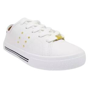 O Tênis Moleca Casual Napa Floather Tachas Metálicas Feminino Branco combina praticidade e estilo em um modelo versátil. Confeccionado com Napa Sardenha de alta qualidade, oferece um design sofisticado e durável. A palmilha em PU é macia, proporcionando conforto durante todo o dia, enquanto o solado emborrachado com entressola que imita corda tramada garante aderência e estabilidade. O fechamento por cadarço permite um ajuste personalizado.