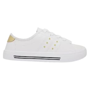 O Tênis Moleca Casual Napa Floather Tachas Metálicas Feminino Branco combina praticidade e estilo em um modelo versátil. Confeccionado com Napa Sardenha de alta qualidade, oferece um design sofisticado e durável. A palmilha em PU é macia, proporcionando conforto durante todo o dia, enquanto o solado emborrachado com entressola que imita corda tramada garante aderência e estabilidade. O fechamento por cadarço permite um ajuste personalizado.