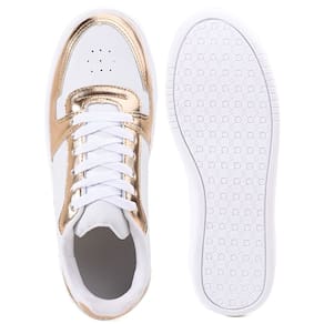Tênis confeccionado com material sintético na cor branco com detalhes em material sintético metalizado e palmilha confort. Ideal para quem busca usar no dia a dia um calçado confortável e estiloso.