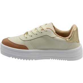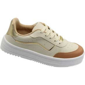 Tênis Plataforma Casual Moleca Acolchoado Floather Feminino - 39 - Bege Claro