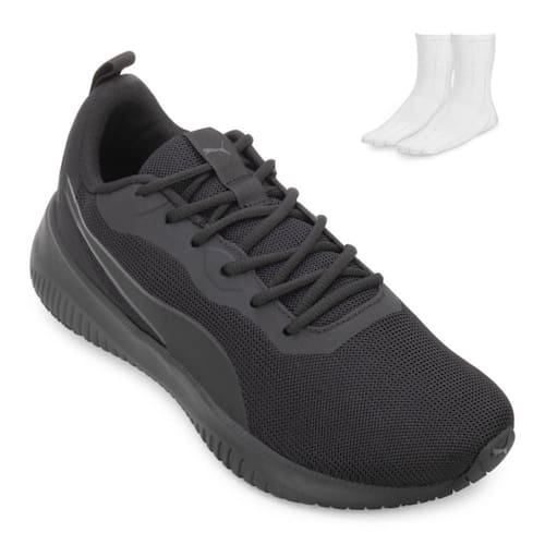 Nome: Tênis Puma Flyer e Meia PM24-37940. Gênero: Masculino. Indicado Para: Caminhada-Dia a dia-Casual. Estilo da Peça: Esporte Caminhada. Ocasião: Esportes-Dia a dia. Material Externo: Têxtil macio e respirável com detalhes em material alternativo. Material Interno: Têxtil. Fechamento: Cadarço. Palmilha: SoftFoam, para maior conforto. Solado: Borracha antiderrapante. Entressola: EVA para amortecimento. Tecnologia: Soft Foam. Tipo de Pisada: Neutra. Detalhes: Nome PUMA e puxador na parte de trás. Peso do Produto: 856 g (o peso varia de acordo com a numeração). Garantia do Fabricante: Contra defeito de fabricação. Origem: Nacional. Código Produto: 01024771. Marca: Puma. Acompanha um par de meias tamanho 37 ao 43. Composição: 83 % Algodão. 12 % Poliamida. 05 % Elastodieno.