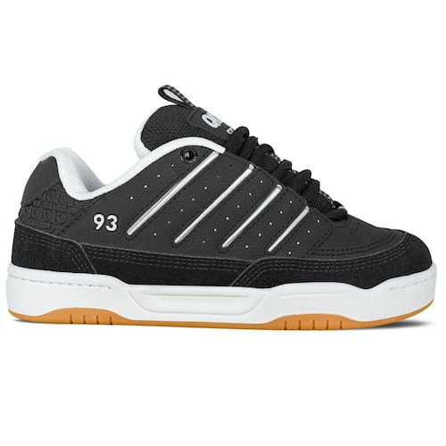 Cabedal resistente: Confeccionado em material sintético de alta qualidade, com acabamento em preto e detalhes em branco.