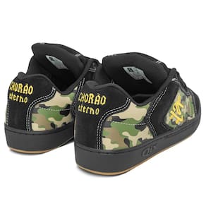 Cabedal: Em camurça com recortes laterais em couro sintético, logo bordado clássico de Chorão na lateral e a inscrição “Chorão Eterno” no calcanhar, além da logo marca Qix Skate garantindo durabilidade e autenticidade.
