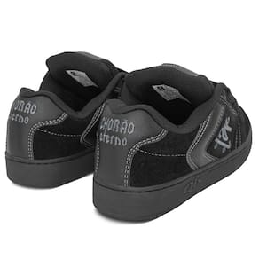 Cabedal: Em camurça com recortes laterais em couro sintético, logo bordado clássico de Chorão na lateral e a inscrição “Chorão Eterno” no calcanhar, além da logo marca Qix Skate garantindo durabilidade e autenticidade.