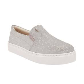 Tênis slip on confeccionado em tecido metalizado, modelo de solado baixo emborrachado com o logo da marca na parte traseira do tênis, possui elásticos nas laterais para facilitar o calce, proporcionando conforto e um toque despojado ao seu visual.