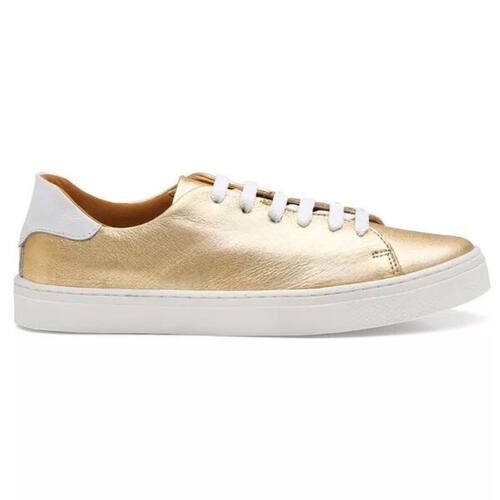 Tênis Sapatenis Couro Moda Casual Feminino Metalizado Cadarço Sola Macia Costura Reforçada Dia a Dia - 38 - Amarelo Ouro