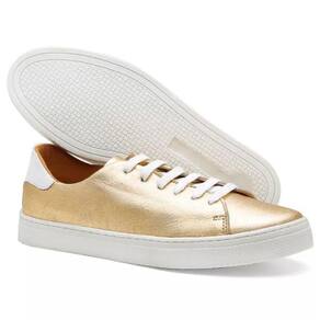Tênis Sapatenis Couro Moda Casual Feminino Metalizado Cadarço Sola Macia Costura Reforçada Dia a Dia - 39 - Amarelo Ouro