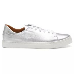Tênis Sapatenis Couro Moda Casual Feminino Metalizado Cadarço Sola Macia Costura Reforçada Dia a Dia - 33 - Prata