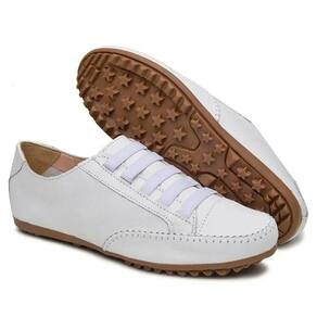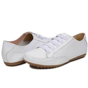 Tenis Sapatilha Feminina Couro Conforto Palmilha EVA Macia Solado Borracha Com Cadarço Cano Curto - 33 - Branco