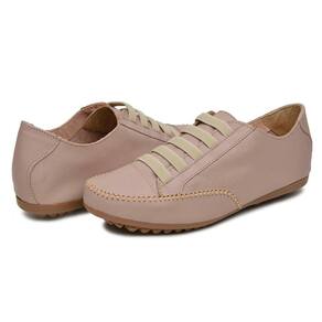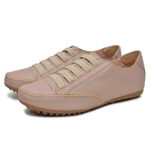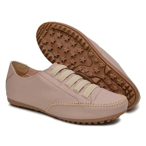 Tenis Sapatilha Feminina Couro Conforto Palmilha EVA Macia Solado Borracha Com Cadarço Cano Curto - Bege Claro - 42
