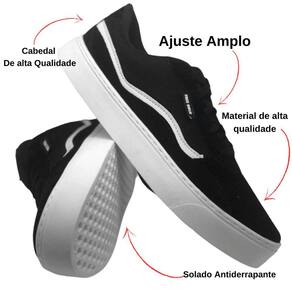 A parte superior do tênis apresenta um material durável que resiste ao desgaste das manobras radicais no skate, proporcionando proteção e resistência excepcionais. Além disso, seu design anatômico e acolchoado oferece suporte e conforto aos pés durante horas de skate, tornando-o ideal para sessões prolongadas nas pistas.