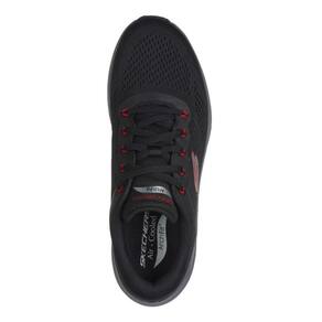 O Tênis Skechers Arch Fit Masculino para caminhada e corrida, possui cabedal em mesh respirável e sintético, oferecendo leveza e ventilação; é fabricado em material têxtil com sobreposições sintéticas para reforço. A biqueira é reforçada para proteção extra. O fechamento é feito por atacadores tradicionais para ajuste seguro. A lingueta é integrada ao cabedal e o colarinho é acolchoado para maior conforto. A palmilha Air Cooled Memory Foam proporciona maciez e respirabilidade; a calcanheira é reforçada para suporte adicional. O forro interior é têxtil macio. O solado é em borracha de alta tração, com entressola de EVA leve e amortecimento responsivo Resalyte, oferecendo ótimo grip e absorção de impacto. Possui puxador traseiro para facilitar o calce. Estilo esportivo casual, design moderno em preto com detalhes vermelhos. Detalhe: logo Skechers na lateral.
