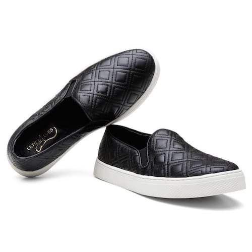 Tênis Slip On Feminino Couro Matelassê Conforto Versátil - 39 - Preto