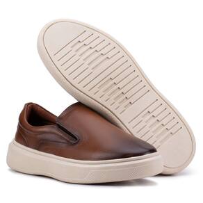 Tênis Slip On IateMasculino Couro Confortável Calce Fácil - 39 - Marrom Cacau