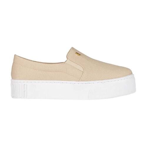 Sobre a Marca - Santa Lolla Com a missão de aliar conforto e informação de moda para mulheres de todos os estilos e idades, a Santa Lolla é uma das maiores marcas de calçados e acessórios do país. Com 20 anos no mercado, a marca firmou-se como uma das principais referências de moda no Brasil, antecipando e criando tendências. Com um time de estilo afiado que cria cerca de cinco coleções por ano, mais de sete mil itens e novos produtos, o público está cada vez mais ávido por novidades e em busca de peças fashion. Desde acessórios e calçados essenciais para o guarda-roupas de qualquer mulher, até peças mais trendy e statement. Tênis slip on, confeccionado em material lona canelada. O modelo traz sola alta que exibe o nome da marca na parte traseira, bico arredondado e elásticos nas laterais para melhor ajuste ao calçar. Ideal para dar um up em qualquer look.
