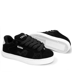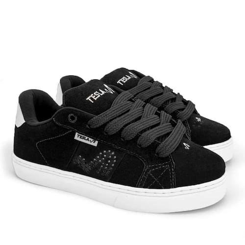 Tesla Hertz Inspirado nos tenis dos anos 90, onde o tenis largo era a grande referencia do verdadeiro tenis de skate, para usar com aquela calça larga, o Hertz é todo revistido de carmuça de alta resistentencia evitando o desgate rapido tendo contato com a lixa do skate.
