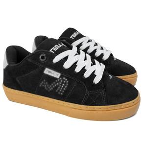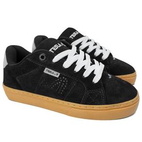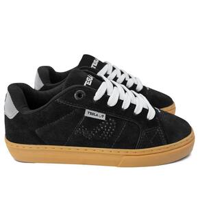 Hertz: O tênis Hertz da Tesla Footwear é um modelo inspirado nos tênis clássicos dos anos 2000, com um estilo "OLD" e referências ao verdadeiro tênis de skate. Ele é conhecido por seu bico curto e largo no pé, bem acolchoado, leve e confortável. O Hertz é revestido de camurça de alta resistência para evitar desgaste rápido ao entrar em contato com a lixa do skate.