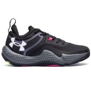 Traseiro conta com aplicação em TPU que envolve o calcanhar. O logo estilizado se mescla com os detalhes em brilho, entregando um visual mais ousado.