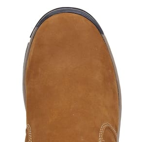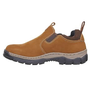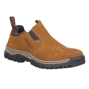 Tênis unissex Zebu fabricado em couro na cor Caramelo, possui cano curto com elásticos laterais, bico redondo, vira costurada e solado de borracha