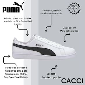 O modelo com design casual e moderno, possui cabedal em poliéster, fechamento em cadarço, solado emborrachado e resistente e logo Puma aplicado na lateral.