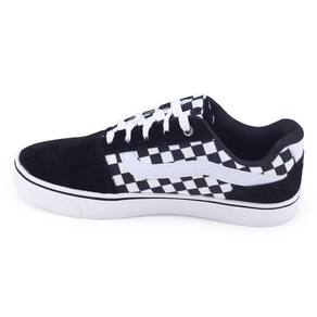 O modelo DK Shoes VS13 é um tênis desenhado para quem curte esportes como skate, ou um estilo casual Streetwear urbano. Seu cabedal é em material têxtil nobuck, é forrado internamente para maior conforto. Seu fechamento é em cadarço reto e sua palmilha em EVA removível, revestida em material têxtil apresentando a logo da marca. O solado é reto, perfeito para quem anda de skate, fabricado em material sintético com 2,5cm de altura, possui frisos para maior segurança.