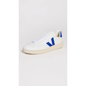 Uma versão totalmente em couro dos tênis V-12 clássicos da Veja, com detalhes e marcas contrastantes.