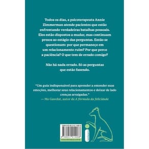 Terapeuta britânica cria manual de bolso com ferramentas para enfrentar traumas do passado e transformar sua vida no presente Todos os dias, a psicoterapeuta Annie Zimmerman atende pacientes que estão enfrentando verdadeiras batalhas pessoais. Eles estão dispostos a mudar, mas continuam presos ao estágio das perguntas. Eles se questionam: por que permaneço em um relacionamento ruim? Por que perco a paciência? O que há de errado comigo? Não há nada errado. Só as perguntas que estão fazendo. Depois de anos ouvindo esses questionamentos na prática clínica, Zimmerman decidiu compartilhar os conhecimentos e as técnicas que utiliza em seu consultório. A autora detalha conceitos complexos de forma didática e oferece exercícios simples, mostrando que, se compreendermos como o início da vida molda nossas atitudes quando adultos, podemos começar a fazer as perguntas certas para mudar nossos padrões de comportamento. Com este guia, você se sentirá mais confiante e terá ao seu alcance as ferramentas de que precisa para encontrar mais propósito, resiliência e alegria no dia a dia. Quer você lide com conflitos em seus relacionamentos, negatividade, ansiedade, depressão ou outro problema emocional, Terapeuta de bolso o capacitará a mergulhar em seu passado para começar a resolver seus problemas do presente.
