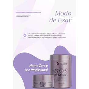 O kit contém: 1 máscara s.O.S 1kg 1 máscara s.O.S 300g Máscara s.O.S protect age de forma antioxidante, recostruindo e combatendo os radicais. A máscara s.O.S antioxidante da dyusar professional hair é uma máscara capilar que controla o ph dos fios, promove maciez e melhora a elasticidade dos cabelos. Reconstrói e combate os radicais livres, cessando a oxidação dos fios. Modo de usar: após lavar os cabelos aplique o produto sobre toda a extensão dos fios. Massageie e deixe agir por aproximadamente 7 minutos. Enxágue bem. Marca: Dyusar Cosmeticos