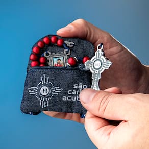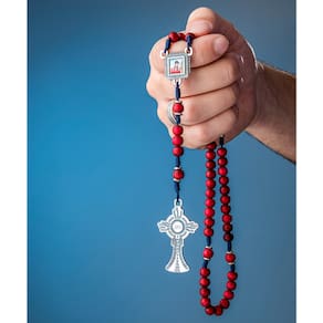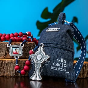 Terço de Carlo Acutis em madeira vermelha 10mm, resistente e bonito, ideal para o uso diário na oração. Acompanha mochila, facilitando o transporte e a conservação. Uma ótima opção para quem busca um terço prático, devocional e também para presentear.