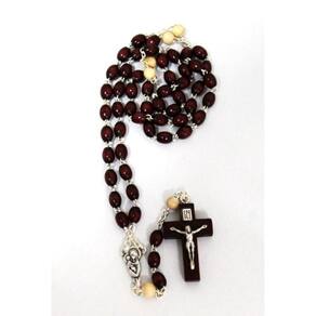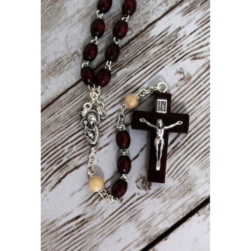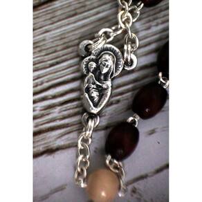 Este lindo terço de madeira trabalhado é feito na Itália, apresenta uma peça central de Nossa Senhora e o Sagrado Coração de Jesus. O crucifixo oxidado pela prata. Feito com contas de madeira acer marrom de 6x4 mm, este rosário mede aproximadamente 37 cm de comprimento. Marca: San Gregorio - Artigos Religiosos