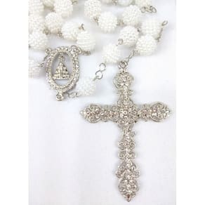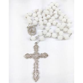 Terço de Noiva confeccionado com pérolas brancas framboesa ABS de 12mm, não descascam e não deformam.