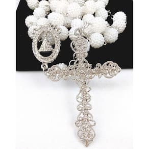 Terço De Noiva Prata Perolas Brancas Framboesa