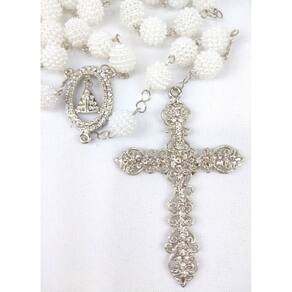 Terço de Noiva confeccionado com pérolas brancas framboesa ABS de 12mm, não descascam e não deformam.