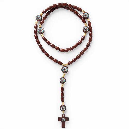 Terço Madeira São Miguel Arcanjo Conta 8mm 45 cm Marrom