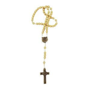 Terço Medalha Das Duas Cruzes Contas Bege Ouro Velho