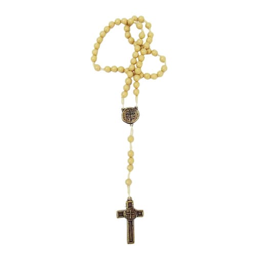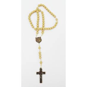 Características Tamanho do terço aproximandamente: 35 cm Material: Contas acrílicas de 8mm na cor bege. Acabamento: Cruz de 4cm e entremeio de 2 cm na cor Ouro Velho. Embalagem: Cartela de Veludo com oração do Santo Rosário e outras. Marca: Evangelize Ean: 7898164183720