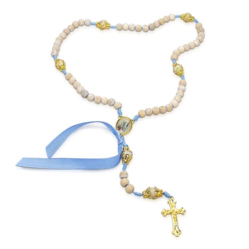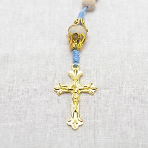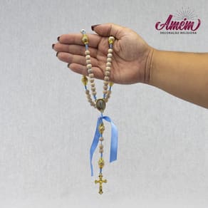 Material: contas em madeira branca e azul 8 mm Metais em dourado Resina Cordão Tamanho: 41 cm de comprimento Dimensões aproximadas do produto. Marca: Não Informado