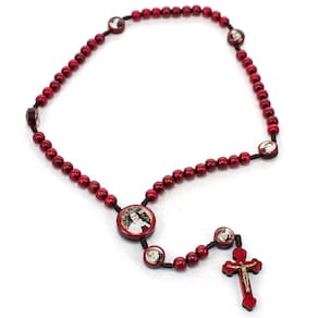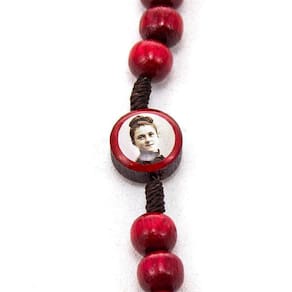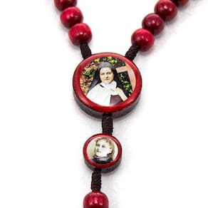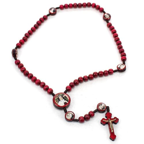 Terço Santa Terezinha Madeira 8mm Vermelho Santa Teresinha do Menino Jesus e da Sagrada Face, nascida em Alençon França , também é venerada e representada como a Santa das Rosas. Material: Madeira vermelha Contas 8 mm Metal em ouro velho Resina Cordão Tamanho: 41 cm de comprimento Dimensões aproximadas do produto. Marca: Não Informado Ean: 7899347274280
