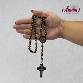 Material: madeira Contas em plástico 8 mm Preto Metais em Ouro Velho Resina Tamanho: 37 cm de comprimento Dimensões aproximadas do produto. Marca: Não Informado
