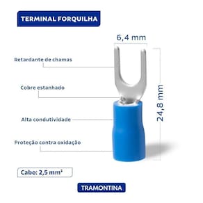 Terminal para conexão elétrica com dimensão de 6,4 mm x M4 e seção de 2,5 mm.