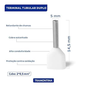Com design funcional e resistente, os terminais de conexão tubulares duplos Tramontina em cobre estanhado e nylon 0,5 mm x 8 branco 100 peças garantem conexões seguras e eficientes para seus projetos elétricos. Fabricados com cobre estanhado de alta condutividade e revestidos em nylon, oferecem resistência e durabilidade. Pacote com 100 peças.