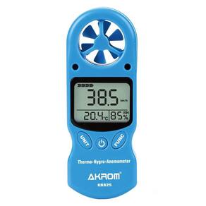 Termo Higro Anemômetro Digital - KR825DESCRIÇÃOO KR825 mede a temperatura ambiente, a umidade relativa do ar e a velocidade do vento em várias unidades m/s, km/h, ft/min, knots e mph . Possui um amplo visor LCD de tripla indicação com iluminação no fundo backlight . Registra os valores máximos MAX , mínimos MIN e médios AVG ocorridos, além de permitir o congelamento das indicações no visor função HOLD .Permite que o usuário realize o ajuste das 3 grandezas calibração local , de modo a reduzir eventuais desvios na indicação e aumentar a sua exatidão.ESPECIFICAÇÕES TÉCNICASTEMPERATURA AMBIENTE:Faixa de medição: -10 a 50ºCResolução: 0.1ºcExatidão: 1ºCUMIDADE RELATIVA:Faixa de medição: 0 a 99%UR Resolução: 1%UR Exatidão: 5%URVELOCIDADE:Faixa de medição: 0.3 a 30 m/sResolução: 0.1 m/sExatidão: 5%Temperatura de operação: -10 a 50ºCUmidade de operação: 0 a 99%UR sem condensação Alimentação: 3V 1 bateria CR2032 Dimensões L x A x P : 40 x 115 x 18 mmPeso: 60 gRECURSOS PRINCIPAIS- Amplo visor LCD de tripla indicação- Visor iluminado backlight - Unidades de temperatura: ºC / ºF- Unidades de velocidade: m/s, km/h, ft/min, knots, mph- Registros de máximas MAX , mínimas MIN e médias AVG - Congelamento da indicação no visor HOLD - Barra gráfica com 12 níveis de velocidade Escala Beaufort - Calibração das 3 grandezas pelo usuário ajuste de offset - Desligamento automático após 10 min. De inatividade- Indicação de bateria fracaITENS INCLUSOS- Bateria CR2032- Alça de mão- Estojo para transporte- Manual de instruções em português