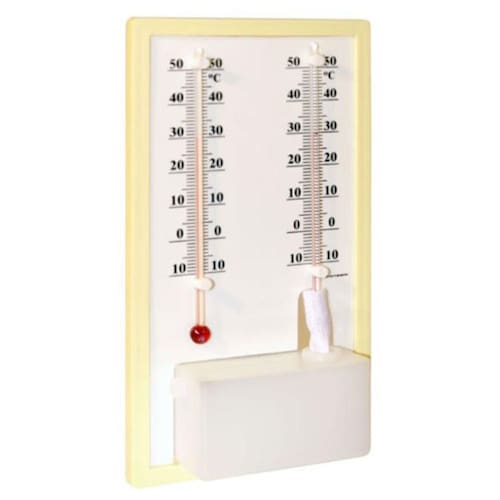 Termo-Higrômetro Analógico Bulbo Seco E Úmido 519503000 Termo-higrômetro com dois termômetros escala externa, bulbo seco e úmido. Para monitoramento de umidade relativo do ambiente. Enchimento ecológico. Base plástica. Diferenciais do produto Instrumentos desenvolvidos para determinar a umidade relativa em diversoso ambientes, tais como: depósitos, estoques, áreas de produção, laboratórios, entre outros. Informações técnicas Escala: -10°c à +50°c; Divisão: 1°c; Comprimento: 190 x 106mm; Enchimento: líquido; Limite de erro: ±1°c; Peso: 90g; Marca: Não Informado Ean: 7896540715268