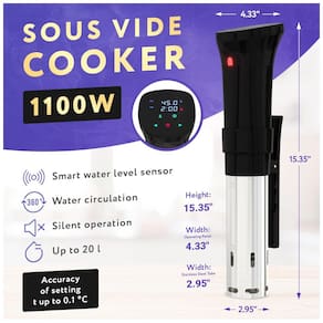 FÁCIL DE USAR E CONTROLE COMPLETO DA TELA DE TOQUE O fogão sous vide APQ facilita muito a alimentação saudável. Conecte a energia e ajuste a temperatura. O fogão sous vide APQ 1100w não tem problemas com WIFI, Bluetooth, testado pelo . Botão simples, operação de um botão, é simples de usar. Apenas a roda de rolagem para aumentar ou diminuir o número na tela, é fácil de dominar e usar. DESIGN LIMPO As panelas APQ Sous vide têm um design simples com uma tela inclinada para evitar embaçamento no painel de controle. O produto adota um mecanismo de proteção de baixo nível de água. Quando o nível de água estiver abaixo do nível mínimo de água, um alarme será enviado e o trabalho será suspenso. O QUE COZINHAR O cozimento sous vide APQ é o nível perfeito de cozimento para praticamente qualquer alimento de sua escolha. A capacidade de bloquear o sabor e a umidade durante o processo de cozimento resulta em textura e sabor inigualáveis. AQUECIMENTO CIRCULADOR RÁPIDO APQ sous vide aquece a água rapidamente, é mais rápido chegar à temperatura. Este mantém a temperatura uniforme e constante, ajuda a cozinhar os alimentos a uma temperatura específica. E o circulador aprimorado também pode lidar com banhos de água muito maiores para permitir cozinhar mais alimentos de uma só vez Marca: Não Informado