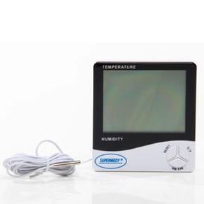Termohigrômetro Medidor Temperatura Digital c Cabo Supermedy O Termo Higrômetro Digital com Cabo Supermedy oferece alta precisão para medir a temperatura 50ºC a +70ºC e a umidade relativa do ar UR 10% a 99% . Possui um design ultra moderno com visor digital que oferece alta precisão na medição. Possui função data e hora. São amplamente utilizados em salas climatizadas e estoques de produtos sensíveis a temperatura e umidade. - Alta precisão de medição;- São amplamente usados em salas climatizadas;- Intervalo de medição: Medição da temperatura 50ºC a +70ºC e Medição da umidade UR 10% a 99% ;- Visor LCD digital;- Função hora e data;- Função máxima e mínima para temperatura e umidade;- Alimentação: 1 pilha AAA não inclusa ;- Cód: 195- Com cabo: 1,90 m;