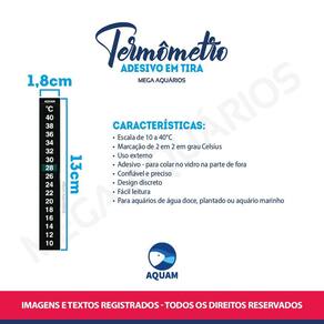 O termômetro adesiva Aquam é um acessório importantíssimo ao aquário. Sua instalação é simples, rápida e de fácil leitura.